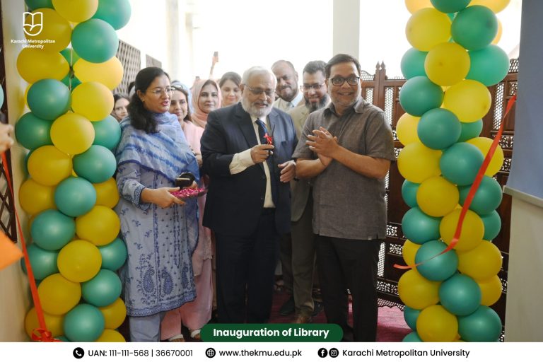 The library was inaugurated by Prof. Dr. Wasim Qazi, Vice Chancellor, Karachi Metropolitan University, along with Prof. Dr. Sarosh Hashmat Lodi, Chairman of CIEC, Sindh Higher Education Commission, who attended as the Chief Guest.